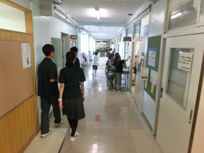 同じ学び舎である弦巻中学校と行っている小中連携の一環として、中学生が本校において毎年職場体験をしています。キャリア教育の位置付けともなるものです。