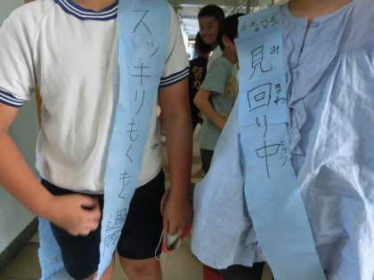 企画・代表委員会による掃除重点週間が始まりました。掃除時間になると、校内を巡回する委員さんを発見。各清掃場所の様子を見て回っていました。見回りが来る、来ないに関係なく、自覚をもって掃除の習慣を確立していってほしいものです。