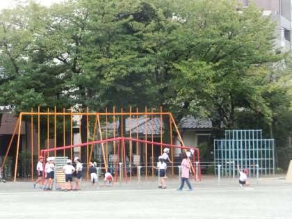 今日は秋の彼岸入り。気温23度、吹く風が心地よい正午です。校庭では、4年生がリレーや鉄棒に取り組んでいます。快適なコンディションの中、外体育を実施できるようになってきました。