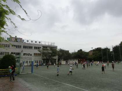 このあとの空模様はいかに? 3・4校時に予定されている5年生対象のサッカー教室は、念のため体育館に変更としました。