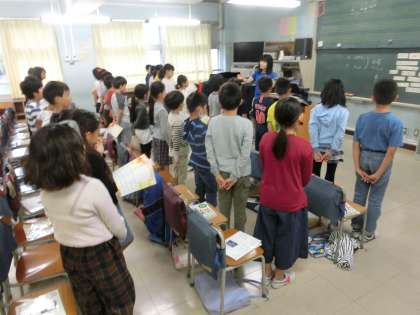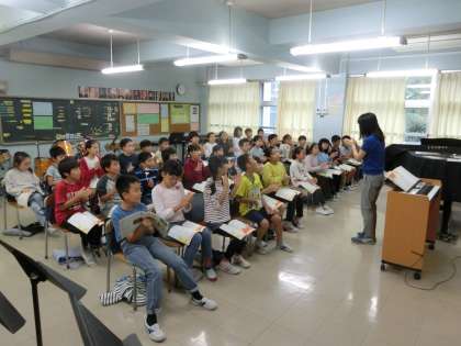 この曲の歌詞がピッタリの季節が近付きつつあります。音楽授業では、一足先に「もみじ」の歌声が流れています。4年生がソプラノとアルトに分かれて、合唱の練習を行っていました。ちょっぴり難しいアルト担当のみんなも、ぐんぐんコツを飲み込んでいき、盛り上がっていく様子がすてきでした。