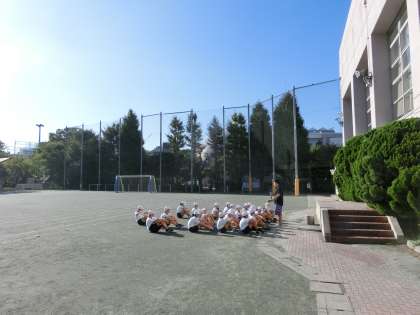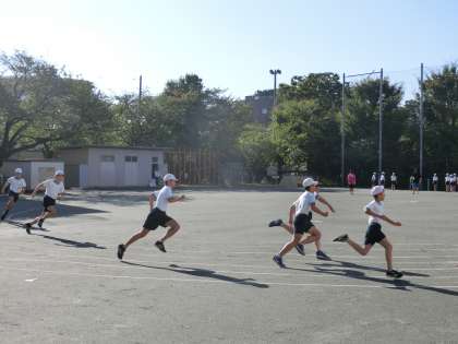 すがすがしい空気の中、気持ちよく運動している6年生です。