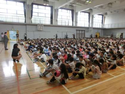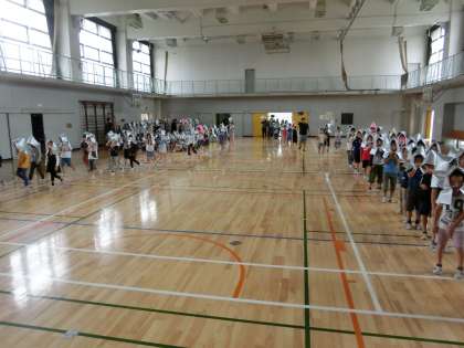 雨ヴァージョンの避難訓練、体育館への避難は合格点をあげてもよいレベルでした。しかし、全員無事が確認され、担当者から「防災頭巾を外します」という指示が出た途端、下学年が口を開きザワザワ感が。いつもはないことです。とっても残念!! 校長先生もお話の中で、その点についてふれていらっしゃいました。生命に関わる重大な訓練、ここは一切妥協せず、高い到達目標を子どもたちに期待したいところです。