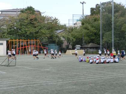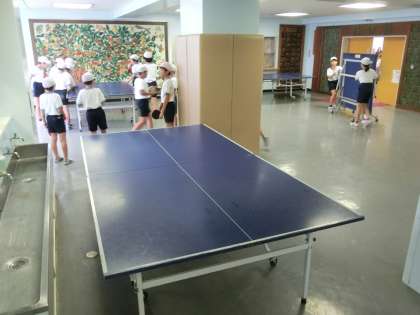校庭では陸上とミニサッカー、体育館ではバドミントンとバスケットボール、ホワイエでは卓球、限られたスペースを最大限に有効活用しながら、運動系のクラブ活動が行われていました。「狭い!」なんて言うなかれ。バリエーション豊富なクラブの選択肢は、マンモス校だからこその特権であります。