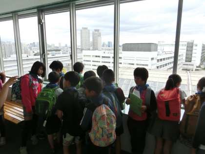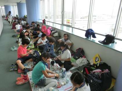 湾岸エリアの眺望を楽しめるフロアが貸し切り状態です。そんな恵まれた場所で、美味しいお弁当を広げました。会話が弾んでいますよ。