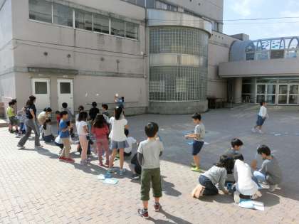 理科の学習で、鏡に反射させた光の明るさや温かさを3年生が調べています。今日は絶好のお天気です。暗い壁に映した光がくっきりと浮かび上がり、子どもたちにとって実り多い活動になっているに違いありません。