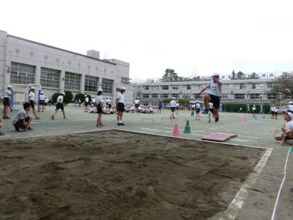 6年生は学年全体で連合運動会の練習です。「跳躍」が光ってきましたよ。