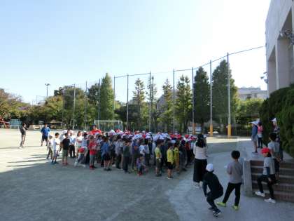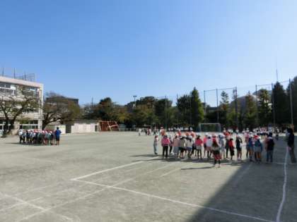 ロング昼休み、3年生が学年集会を開催しています。子どもたちの司会でスタートし、ドッジボールの熱戦が繰り広げられていました。