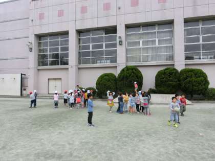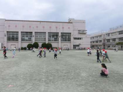 各クラスで楽しい遊びに夢中です。先生も童心に返り、一緒に汗を流していました。そうなんです、こんなうすら寒い日でも、思いっきり走り回ると「暑い!!」