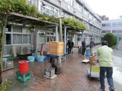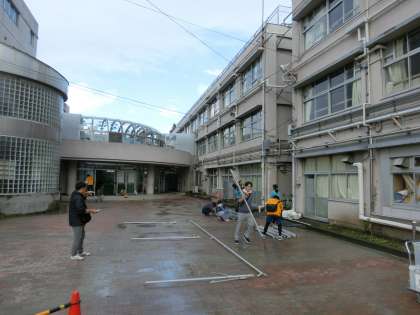 あいにくの天気予報、実際に沿岸部は雨でしたが、桜新町に到着すると晴れていてビックリしました。同窓会の皆様を中心に、屋外ヴァージョンで準備が着々と進んでいます。このまま雨に邪魔されないとよいですね。よろしくお願いします。