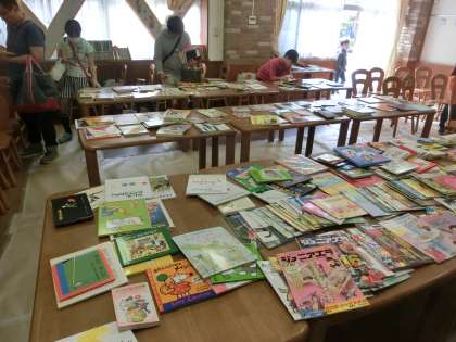 古本販売がランチルームで行われています。是非お立ち寄りください。