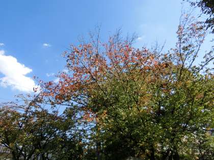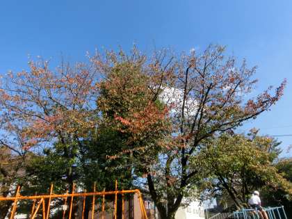 ロング昼休み、ワクワク笑顔で遊ぶ4年生を見に校庭へ出たとき、ふと木々に目をやると・・・。