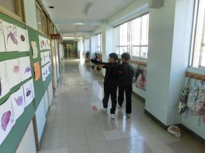 図工単元「まつがおかのようせい」に取り組むにあたり、5年生が校内を巡って、妖精さがしを行っています。さて、一人ひとりがどこで、どのような妖精を発見して帰ってくるでしょうか。そして、それが表現活動において、どう表されていくのかが見どころですね。