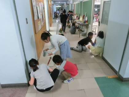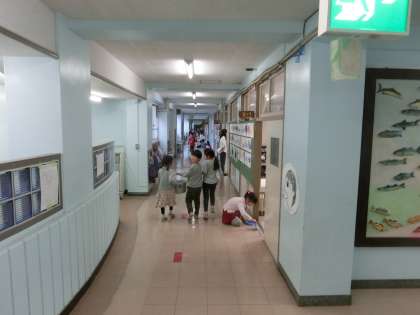 中休みも、昼休みも、校庭遊びが叶わなかった、松小の元気な子どもたち。こんな日は先生たちにとって一番の恐怖です。それでも、怖いもの見たさで、掃除時間の校内をぐるっと一巡。