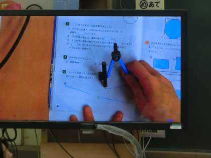 3年生算数、コンパスの機能について学んでいます。