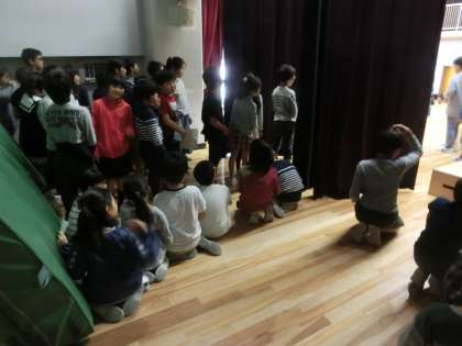 自分が舞台上でセリフを言う時間より、舞台下のひな壇や袖で待機する時間の方が長く、子どもたちにとって、その時間を姿勢よく、静かに乗り切ることは難関です。じっと出番を待つ子、狭い空間でお互いに場所を譲り合う子、きりっとした姿勢を崩さずがんばり通す子、NICEがいくつも見つかりました。