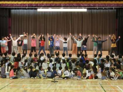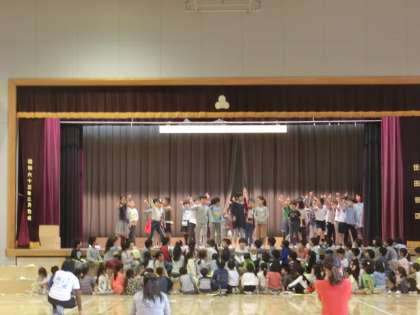 兎角こんな指導になりそうなところで、敢えて一日だけお許しが出たという次第です。子どもたちはヨッシャーとばかり、上半身をひねらせて、ステージに夢中! 心おきなく、十分に満喫することができたようでした。