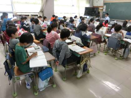 説明文「月のかげ絵」を段落ごとに読解しています。4年生は段落に着目し、そのひとまとまりで文章が構成されていることに対する認識を高めていくことが、求められている大きなポイントです。