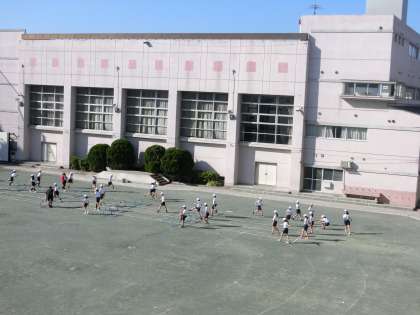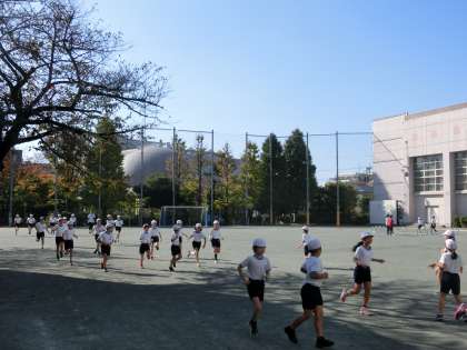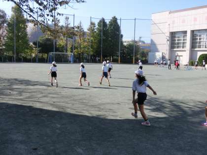 こんな秋晴れの日は、校庭体育の爽快感が桁違いです。5年生の2クラスがその幸運に当たりました。