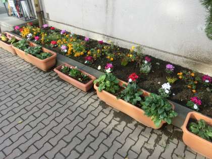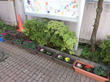主事さんの手によって植えられたお花が更に数を増し、晩秋の校内に彩りを添えています。よーく観察しているみんななら、どこで咲いているのか、一目で分かりますね。