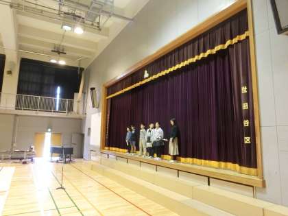 児童鑑賞日、はじめ・おわりの言葉を担当する2年生と5年生が、休み時間を返上してリハーサルに臨みました。保護者・地域の皆様には、ご覧いただけない代表者たちなので、ちらっとではありますが、ここに登場してもらいました。