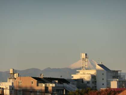 スカッと晴れて、キーンと放射冷却。この秋初めて、最低気温が10度を下回りました。青空に真っ白な富士山が映えています。