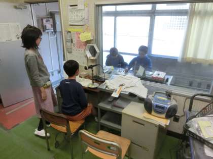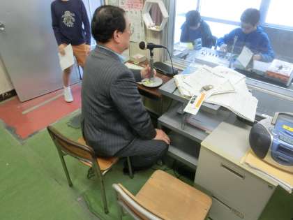 お昼の放送室に登場したのは、なんと校長先生! マイクに向かってお話が始まりました。
