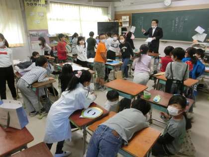 各クラスでは、朝の健康観察中です。お休みがないとよいですね。早くも衣装を着用し、張り切っている子も。
