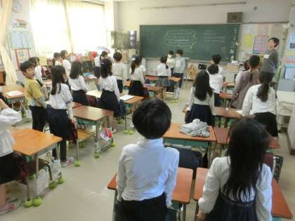 黒板に書かれた先生からのメッセージが、子どもたちを応援していました。いつものみんなの笑顔があれば、お客様もきっと満点スマイルだね。