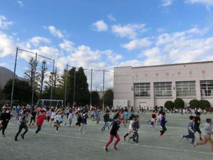 今日は奇数学年のマラソンタイム、「自分のペースを考える」目標のもと、一人ひとりがしっかりと走っていました。集合時は寒かったのに、終了時は額や首筋に滝のような汗を流している少年もいました。