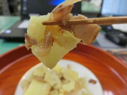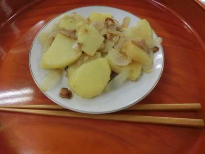 家庭科の調理実習、今日はジャーマンポテトに挑戦です。ポテト、玉ねぎの甘み、ベーコンが絶妙のコンビでしたよ。ごちそうさまでした。大満足。
