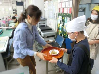 勿論、担任の先生にもお届け隊が登場し、「待ってました!」と、先生はとびきりの笑顔!!