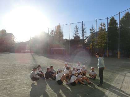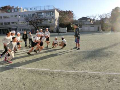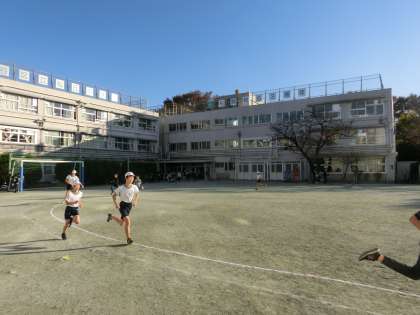 朝のマラソンタイムが始まる前に、一足お先に校庭10周を終えたみんなです。「苦しい」時間が大半の練習ですが、これを乗り越えた明日には、他の誰にも真似できない大きな力が待っていますよ。