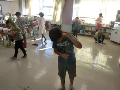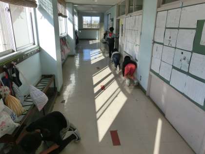 自然体で掃除をしている姿を紹介したいと思ってはいるものの、子どもたちはホームページに載るかもしれないという思考が働いており、カメラマンの存在に気付かれないようにするのは至難の業です。今日もバレバレ、敗退の巻。
