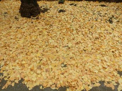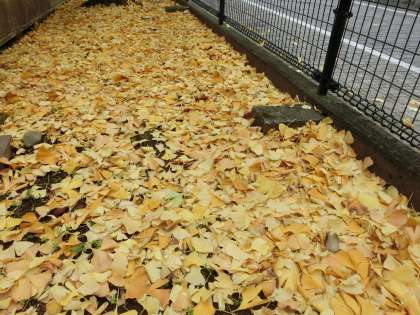 校内の至る所、ふかふかの黄色いじゅうたんが出現しています。今、ここで紹介した画像は、残念ながら子どもたちが目にすることはないであろう、校舎北側の様子です。
