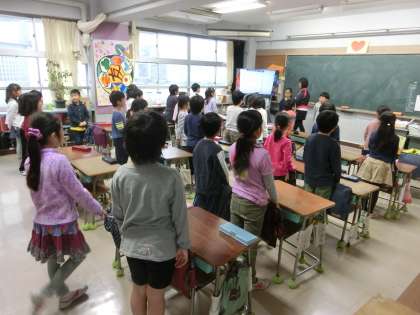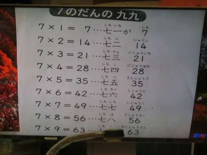 2年生の教室から九九を唱える声が聞こえて来ます。今朝は、7〜9の段のおさらいをしていました。