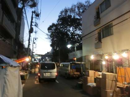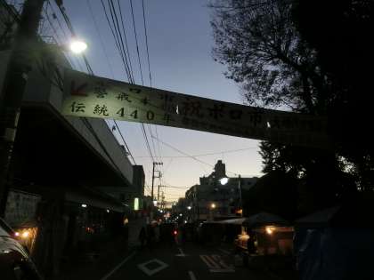 学校から静かな住宅街を抜けると、午前6時半だと言うのに、大勢の方々の姿あり。本日からボロ市です。冷え込み厳しい早朝より、関係の皆様が集まり、開催の準備に追われていました。