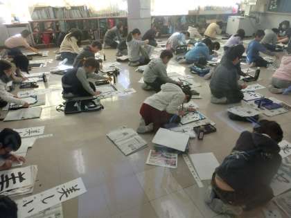2019年まであと2週間と迫った今日、書き初めの練習をしていたのは4年生です。いつもの毛筆指導とは違う、大きなお手本用紙を目の前にすると、気分までもがお正月仕様にチェンジしたかもしれませんね。