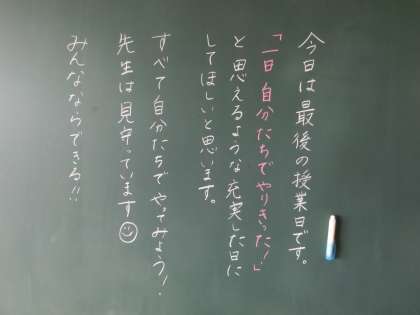 教え子たちに対する担任の情熱、期待・・・、2学期は間もなく幕を閉じようとしていますけれど、その思いは永遠です。そこには深い愛情があります。時にきびしい言葉を投げかけることはあっても、大好きだから、認めているからこそであり、信じる気持ちに変わりはありません。