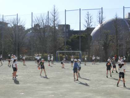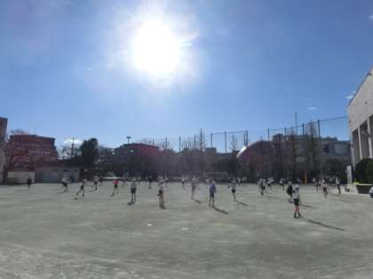 この画像を見る限りでは、すごくクリアで、まぶしい青空なのですが、実際はさにあらず。今日は校庭は、強風で大変なコンディションです。しかし、元気に活動する4年生たちは、そんな背景を感じさせません。