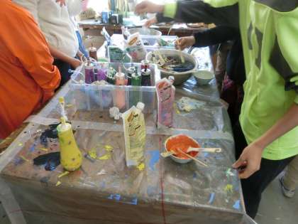 松小のフェンスを彩るメッセージボードを6年生が制作中です。先輩たちが残してきた作品群に、このあと今春卒業するみんなのボードが加わります。一年365日、昼夜を問わず、いつでもご覧いただける点もポイントですね。