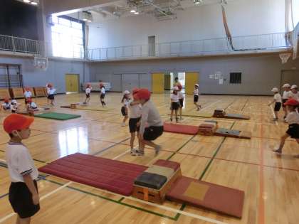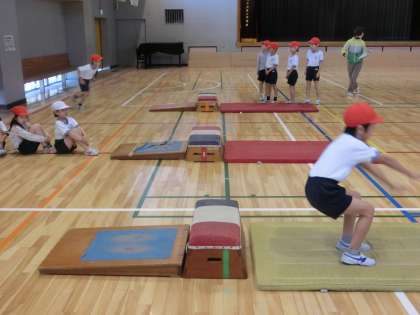 先週、スリル満点な6年生の跳び箱運動(Up済み)を見た直後だけに、1年生のそれが余計にのどかに感じられました。あと5年後には、「ほのぼの」ムードから「スリリング」に変容しているのでしょうね。