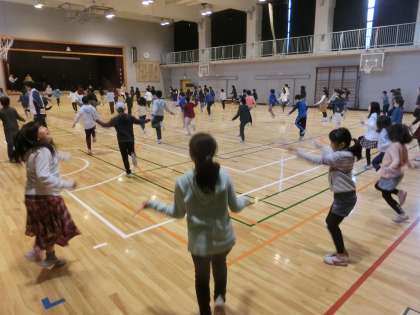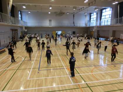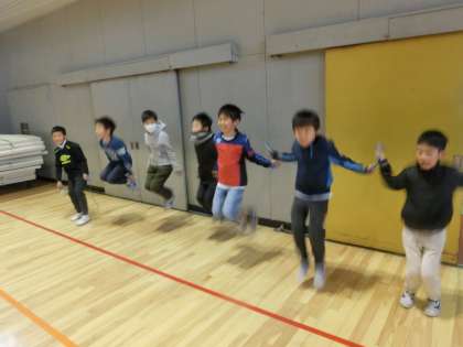 本日の短なわ名人の取組は4年生対象でした。中休み、集まってきたみんなは、ノルマという雰囲気ではなく、心から活動を楽しんでいるオーラがびしばし。高学年のリーダーの指示の下、意欲的に跳んでいる体育館には、活気が満ち溢れていました。