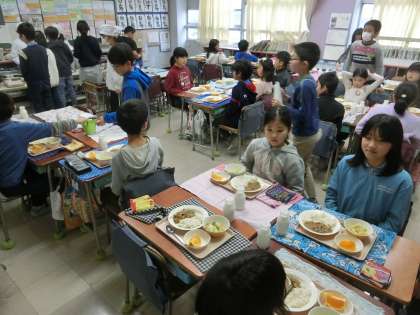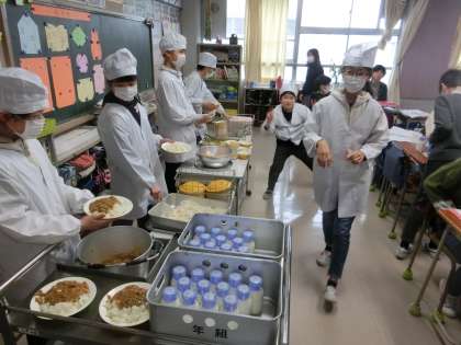 職員室で給食を摂る、とある先生のテンションが上がっています。確かに、昭和にはなかった献立ですね。