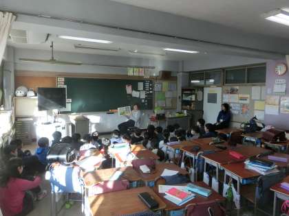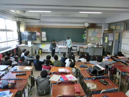 6年生にとっては、残り2回の読み聞かせです。大型絵本を食い入るように見つめるクラスもありました。