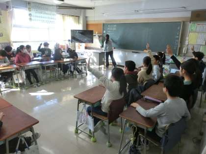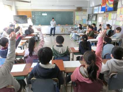 道徳科の授業です。本校の取組「あそべくつ」でも重点を置いて指導している通り、挨拶をはじめとする礼儀をわきまえて生活していくことは、人として非常に大切なことです。5年生が礼儀について、見つめ直したり、振り返ったりする時間を過ごしていました。