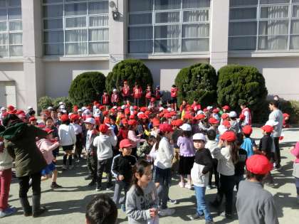 おにごっこクラブ主催の企画が始まりました。中休み、校庭には嬉しそうな1年生と2年生が大集合です。
