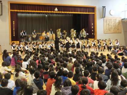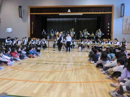 音楽朝会は金管バンドの発表でした。正装で臨んだメンバーたちの心意気は、服装だけでなく、表現にもあらわれるものです。朝練習を通して高め続けてきた2曲が演奏されました。