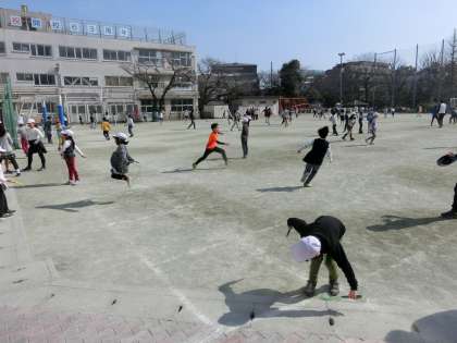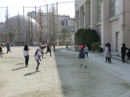 昼休み、気温は18度を超えています。暖かいですねぇ。上着どころか、羽織っていたパーカーも脱ぎ捨て、半袖姿で遊ぶ子も汗だくです。
