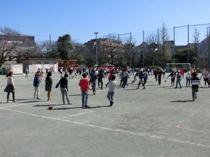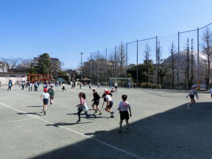 ロング昼休みは4年生が割り当てでした。各クラスとも、ボールゲームやおにごっこ系で盛り上がっていました。